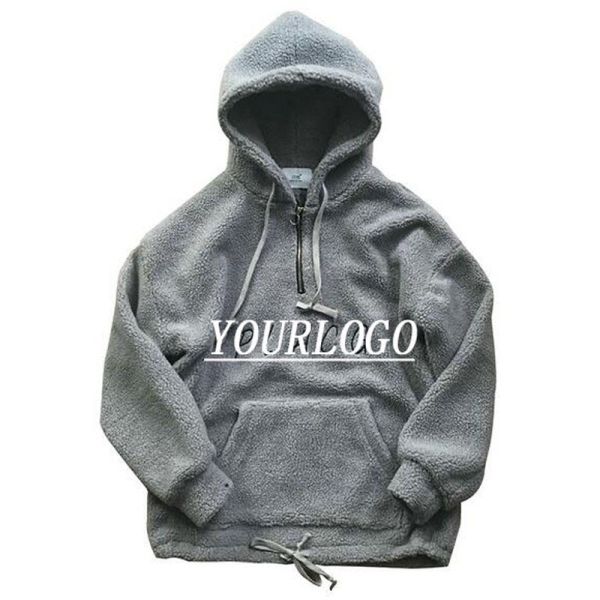 Custom half zipper fleece pullover mens sherpa hoodies made in China